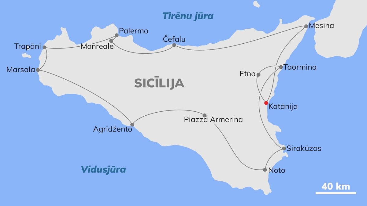 Sicīlija – sala, kas jau no senatnes apvīta ar daudziem mītiem un leģendām, bagāta ar iespaidīgiem senatnes pieminekļiem un daudzveidīgu tautu un kultūru sajaukumu. Vēsturiskie pieminekļi, burvīgi dabas ainavu skati, varenais Etnas vulkāns un dzīvīgais Palermo – vietas, kas jau gadsimtiem ilgi piesaista tūristus no visas pasaules. Iepazīstiet to visu un vēl daudz ko citu plašajā, aizraujošajā apskates ceļojuma programmā, kas atklāj šīs slavenās salas burvību visā tās pilnībā.